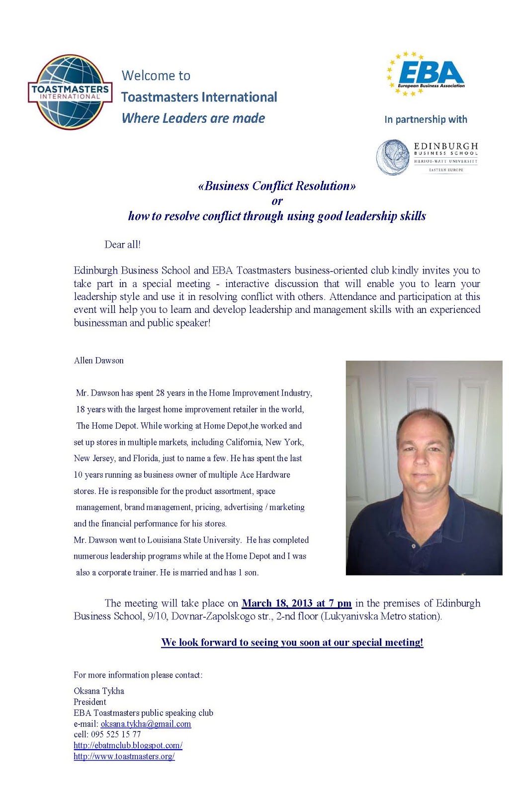 Dear Toastmasters and friends of EBA Club!